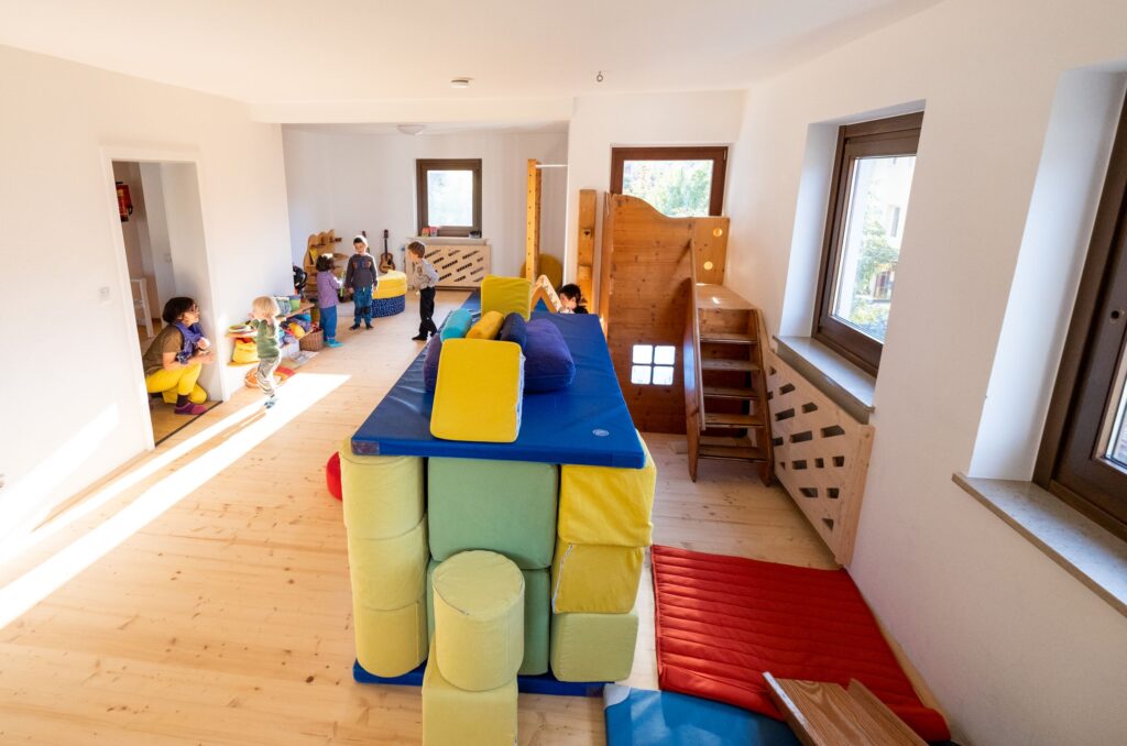 Auf zwei Stockwerken stehen den Kindern vielfältige Möglichkeiten zum Spielen und Entdecken zur Verfügung.